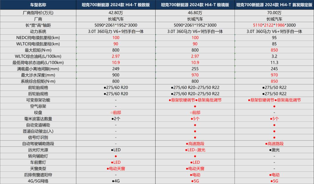 接下來,我們將根據官網數據詳細為大家介紹坦克700五種車型及相關配置,多角度為大家解讀坦克700。一共有三款車型,分別為:極致版、極鏡版、首發限定版。
