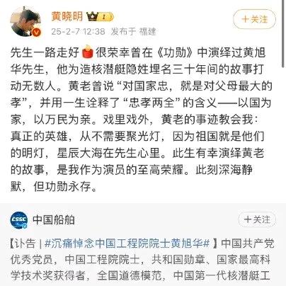 月7號,娛樂圈和科技界都安靜了一瞬。為啥?因為大名鼎鼎的黃曉明在網上發文,深情悼念了剛剛去世的核潛艇之父——黃旭華院士。這可不是普通的悼念,這其中有故事!