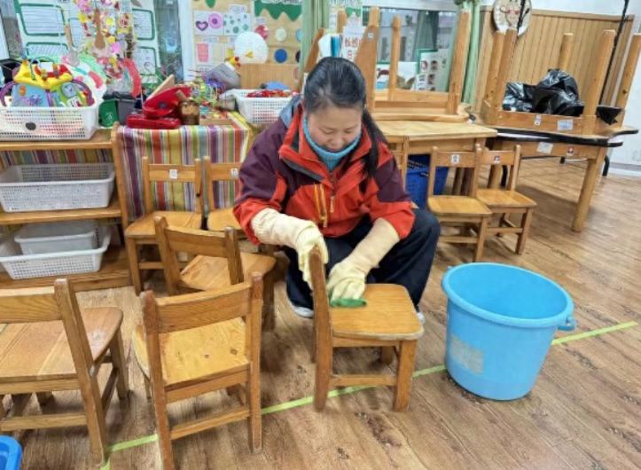 全體教職工井然有序、各司其職,對幼兒園內的每一個角落展開了細致的清潔工作。從教室內的桌椅、地面、玩具、圖書,到盥洗室的每一個細節,再到公共區域和戶外大型器械,無一遺漏。
