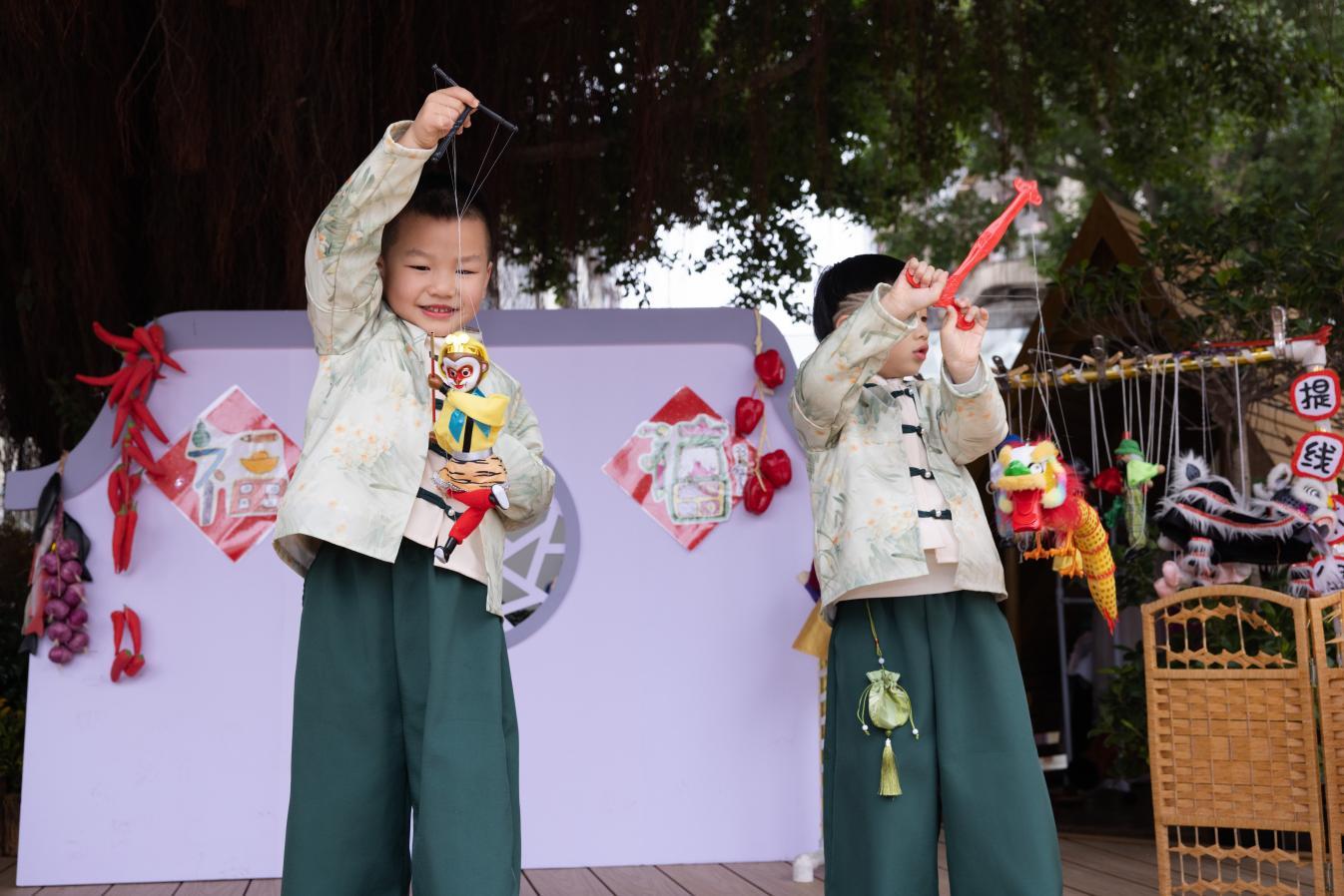 糖畫、面人、提線木偶、皮影戲……非遺體驗區成為全場焦點。家長張女士感嘆:“孩子第一次接觸提線木偶,跟著藝人學動作特別認真,這樣的體驗比書本更生動!”