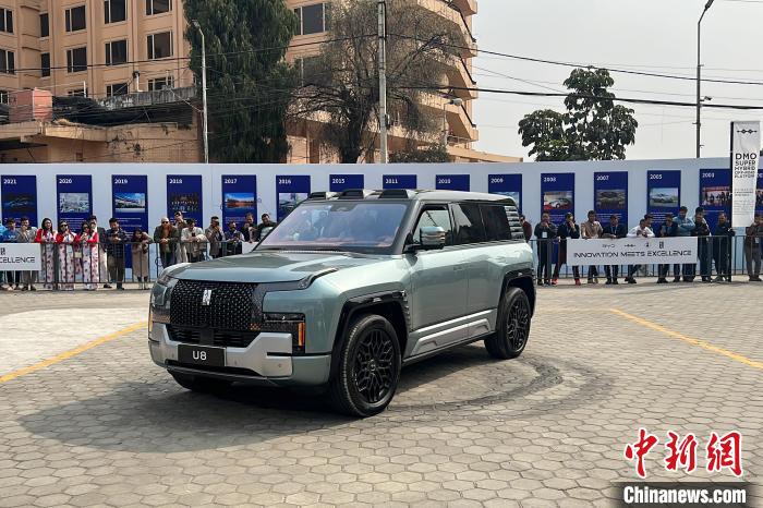 2月26日,比亞迪“仰望U8”展車在尼泊爾加德滿都展示360度原地掉頭。中新社記者 崔楠 攝
