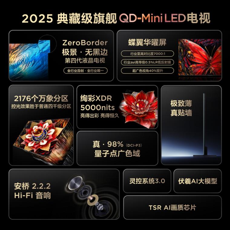 如果說普通電視的背光是一整塊大燈泡,這臺的“萬象分區”技術相當于把屏幕切成幾千個小區域獨立控光。比如畫面里出現星空,亮的地方能精準提亮,暗處又能徹底“隱身”,對比度直接拉滿。官方數據說是7000級分區,說人話就是:哪怕拍一張夜景照片,燈牌的高光和陰影里的磚瓦紋路,它都能給你摳得明明白白。抗反光黑科技,白天也能追劇了