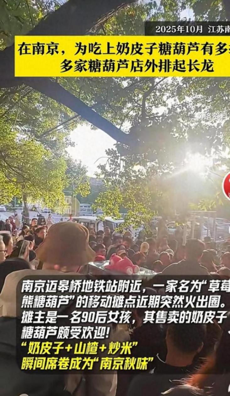最近走在街上,你要是沒見過排長隊買奶皮子冰糖葫蘆的場景,那可真是out了!這款把傳統糖葫蘆和奶皮子結合的小吃,直接橫掃全國街頭,杭州、南京、哈爾濱等城市的網紅攤位前,數百米長隊一眼望不到頭,有人帶著小板凳下午1點就來排隊,硬生生等倆小時就為這一口。南京邁皋橋地鐵站旁的“草莓熊糖葫蘆”攤,90后攤主“燃姐”憑著這串小吃出圈,火到一度暫停出攤找固定攤位,復課后依舊人氣爆棚,單日銷量輕松破數千份,店員從早忙到晚都供不上貨,妥妥的“冬日小吃頂流”。