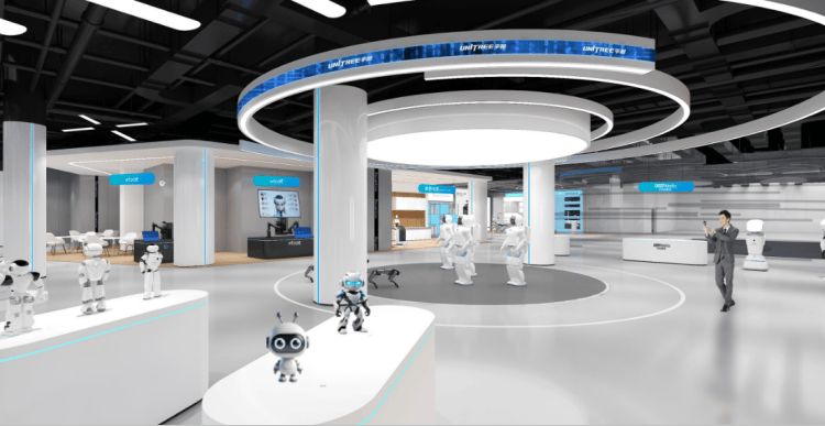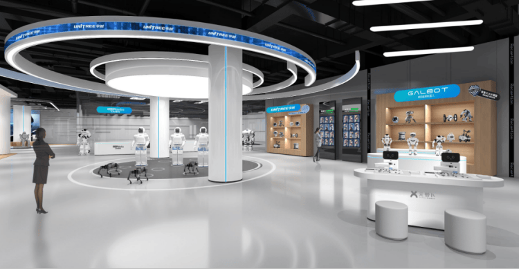 強鏈接:“三大中心”打通“任督二脈”。旗艦店位于蘇州高新區獅山文化廣場集成電路創新中心,建筑面積約2000平方米,圍繞“六個S”功能體系,以“三大中心”構建從技術展示到場景轉化的完整生態。未來體驗中心聚焦工業、醫療、家居、零售等全場景沉浸展示,借助互動裝置提升參與感,并設置品牌櫥窗與路演區,實現展示體驗與產品銷售、商業租賃的高效轉化;核心展陳中心以“機器人生命歷程”為主線,系統呈現從零部件到整機的技術路徑,并依托零部件展示、售后維保與創新工坊三大單元,支撐綜合解決方案與產品銷售、維修服務與全生命周期保障以及技能培訓的全面落地。競技互動中心通過組織機器人足球、擂臺賽等對抗與競技展示,強化品牌傳播與公眾吸引力,推動企業與場景方對接,成為產品推廣與解決方案迭代的公共舞臺。“三大中心”面向公眾提供沉浸式互動與科普教育,降低機器人使用門檻,培育未來消費市場。同時,為企業提供產品首發、場景驗證與供需對接平臺,實現從“看得見”到“可成交”的高效轉化,形成市場端與產業端的雙向賦能。