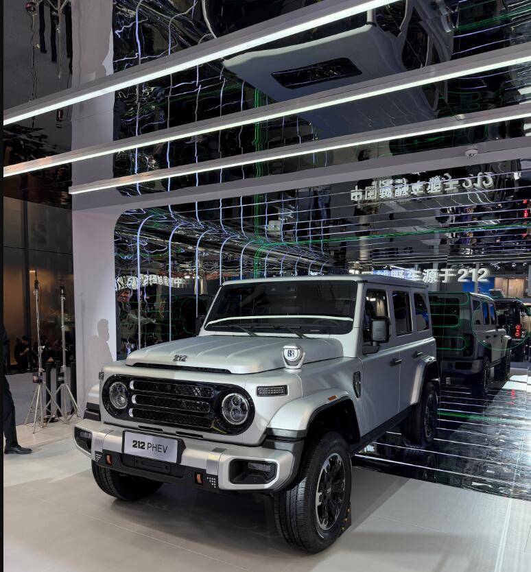 全新212 T01 PHEV在本次車展上首發亮相,將于2026年一季度完成上市。從設計的角度講,這是一款典型的“方盒子”硬派SUV,新車跟汽油版車型相似,網狀前格柵,搭配圓形雙大燈,典型的復古經典派。
