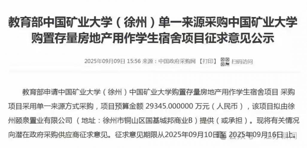 哎呀,朋友們,今天聊個新鮮事!您能想象嗎?一所大學為了解決學生住宿難題,竟然一擲千金,直接沖向商品房市場“掃貨”了!沒錯,就是中國礦業大學徐州南湖校區,近期擬投入2.9345億元,一口氣買下490套現房當學生宿舍,套均價格僅60萬元,相當于市場價打了對折!這波操作簡直讓人目瞪口呆,背后究竟藏著什么玄機?一起來扒一扒!